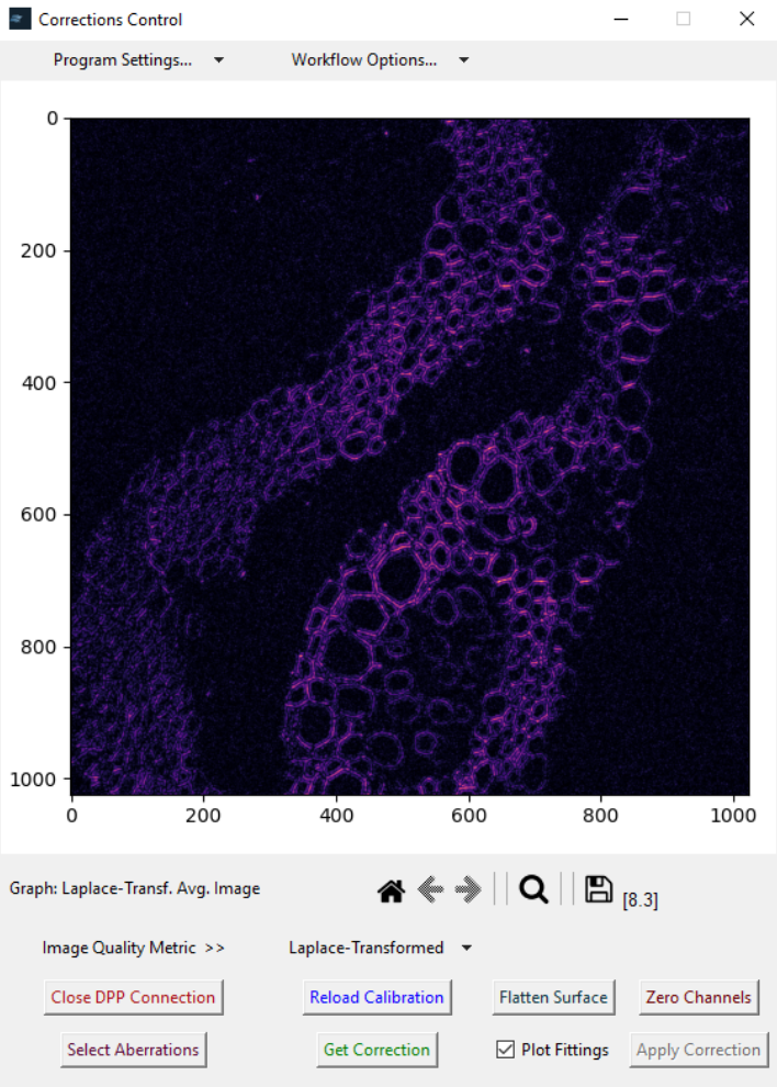 Phinden is compatible with several existing microscope control software packages. It handles the aberration measurement and adjustment to optimize image quality in real-time.